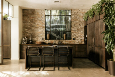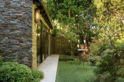 Soaring ceilings, steel windows, stone touches, and wood textures create a warmly modern home on the best street in Venice. Kim Gordon's famous attention to detail and signature Venice style includes a sunny breakfast and lounging area tucked under the stairwell, a glass enclosed, light filled pantry/wine room which serves as the wall for a multi-purpose great area - a place to dine, entertain, or conduct relaxed meetings. A dramatic 14-foot rolling glass wall retracts to reveal mature trees and wispy plantings. This 4,300 square foot home has 4bds, 5bas, custom, fully finished all wood closets in every room, and a vaulted, en suite master bath with steam room. At the end of the home is another living area, bar and kitchen, plus studio style apartment. There are 3 separate gardens flanking this breathtaking property w/a stone 2-car garage, plus a rooftop deck with 360-degree views. Space, texture, and privacy create a tranquil treasure. The home also features world class recording studios, responsible for several Grammy Awards.