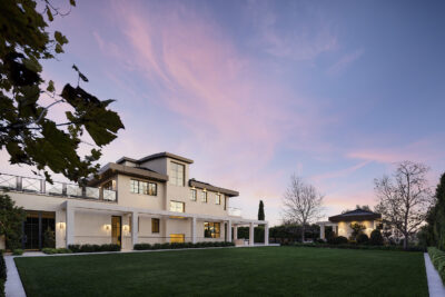 Envisioned by architect to the stars Philip Vertoch and crafted alongside award-winning, AD100-named design studio Ingrao Inc, The Bonhill represents a masterclass in blending architectural precision with timeless style. Concealed behind privacy gates with mature hedges lining its perimeter, this immaculate ocean-view estate includes multiple outdoor terraces offering spectacular panoramas, a sprawling grassy lawn, and premier amenities composed of fine materials. An impressive foyer provides a sense of continuous space with its floating limestone staircase as centerpiece, each step repeating in soft, rhythmic progression. An elegant dual-sided Cristallo marble fireplace partitions the formal living room and nearby parlor with stylish marble wet bar as soothing breezes waft through paned French and pocket doors. The true marvel of the home is its culinary center, a fusion of Farmhouse and transitional forms, a blissful yet understated display of calming hues and varied texture, optimized for casual indoor-outdoor living and entertaining. There are two center islands, custom-fitted designer cabinetry, wine refrigeration, chef-grade Gaggenau and Sub-Zero appliances, and preparation kitchen. Both the formal dining room and the library are nods to traditional, classic style. Upstairs, the owner's suite opens to a vast patio with incredible views of the Pacific, Catalina Island, treetops, mountains, and urban sprawl. Its sleek, spa-inspired bath includes a soaking tub, oversized shower, makeup desk, toilet room, and dual-sink vanity. There are also two walk-in closets and a secondary en-suite marble-clad bath. From the spacious rooftop deck, serve party guests, barbecue and serve light bites, and recline with fantastic vistas as backdrop. For lazy mornings and warm afternoons, a pajama room transitions to a sunny travertine balcony surrounded by lush greenery, reminiscent of summers abroad. Standout luxe amenities include a state-of-the-art gym, theatre with refreshment bar, art gallery, wine tasting/cigar lounge, and wellness spa with steam shower, massage room, and dry sauna. An elevator connects all levels. Outside, lounge poolside under open-air verandas and meditate in peaceful gardens. The pool includes a baja shelf and accompanying cabana with bar and shower. The long pebble driveway leads to a finished subterranean garage affording parking for eight vehicles, bringing the grounds' total capacity to 17 or more. Relish an idyllic, peaceful existence positioned in Brentwood's Bonhill-Tigertail estates section, one of the world's most sought-after, celebrity locales.